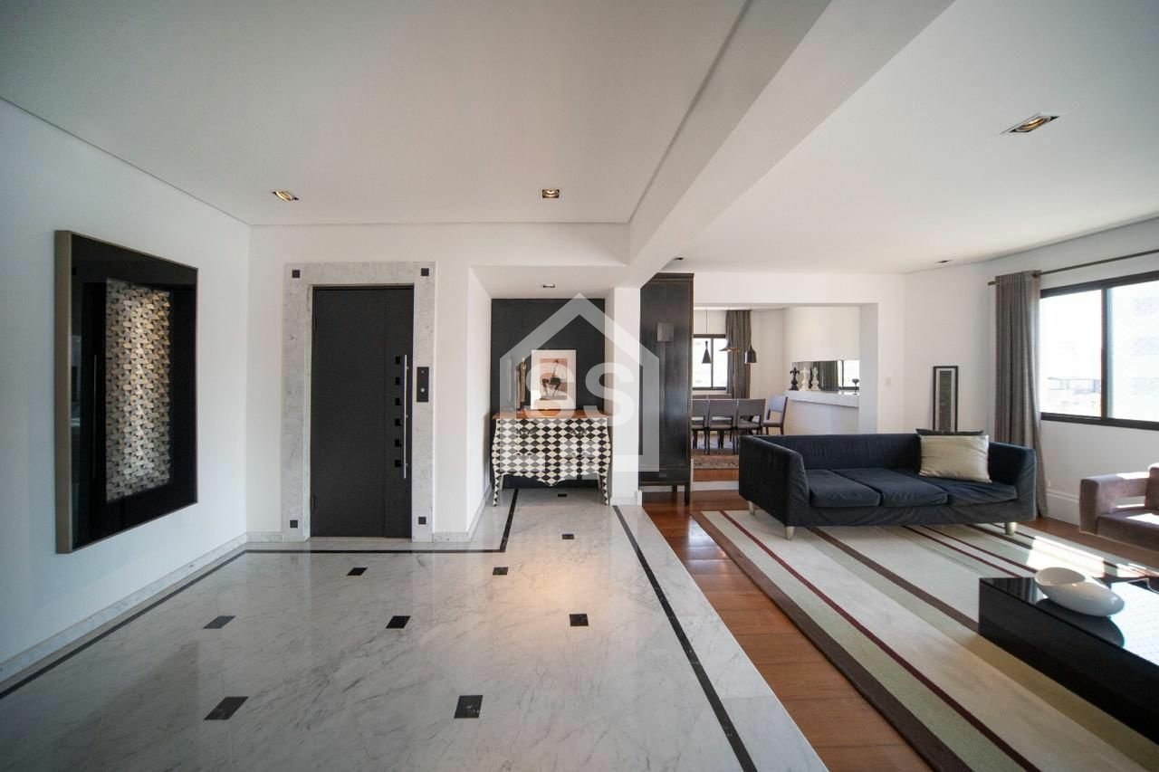 Hall social amplo e aberto, com piso em mármore; Living com lareira; Sala de jantar; Home office; Suíte master - banheiro com 2 chuveiros e closet; Suíte - banheiro com bancada de maquiagem; Terceiro Quarto - com banheiro exclusivo; Quarto dormitório - transformado em Home-Office (fácil reverter). Cozinha e área de serviço com armários planejados, bancada de café com máquina, forno e micro-ondas em torre; fogão, grelha e forno; Máquinas de lavar e de secar roupa novas; Despensa e/ou louceiro; Suíte de colaborador mobiliada.