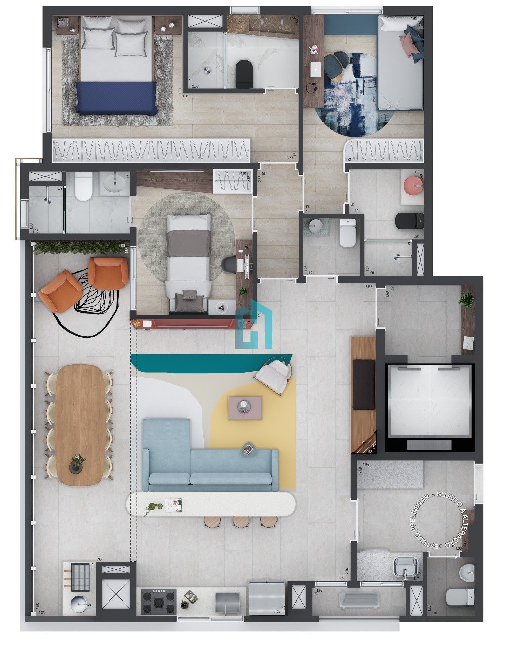 3 suítes