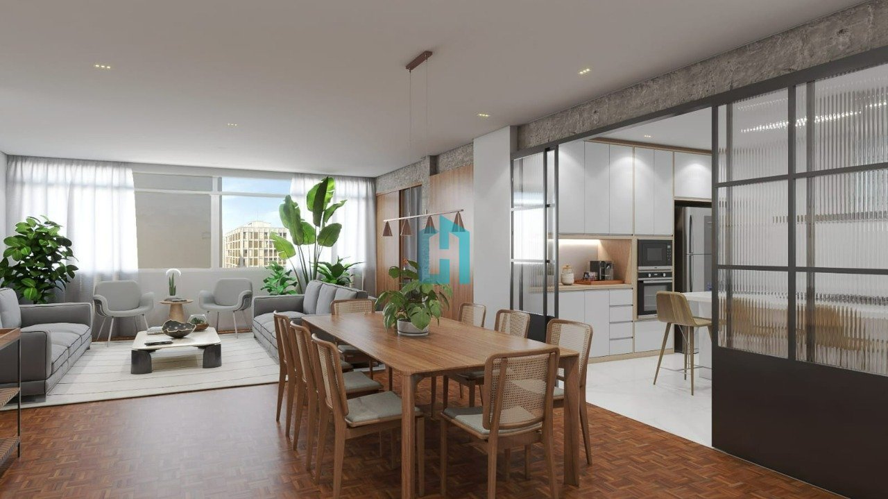 A planta quadrada desse apê possibilitou que o arquiteto mexesse na circulação da área íntima para criar 3 boas suítes, uma delas master. Os quartos são todos de frente para a Al Tietê e muito ensolarados. Na área social houve a já tradicional integração da cozinha com a sala de jantar, aumentando assim o espaço de convivência. Uma porta de serralheria de ferro com vidro poderá promover a separação ocasional desses ambientes, mantendo o estilo contemporâneo da reforma. A ampla sala conta ainda com um ambiente destacado, coringa para ser um escritório, sala de TV ou sala de leitura. A localização dispensa comentários, em um eixo que contempla restaurantes, padarias e sorveterias artesanais, e toda a gama de comércio dos Jardins.