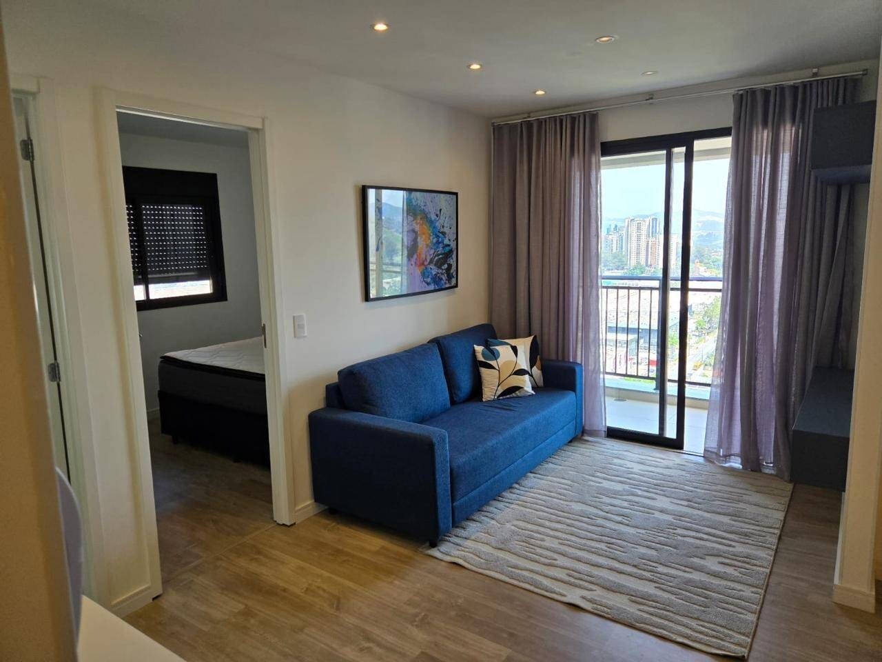 Excelente apartamento novo e mobiliado no bairro Tamboré, Barueri - SP, com 57m² de área total. O imóvel conta com dois quartos, sendo uma suíte, banheiro social, lavanderia e cozinha equipada com planejados. A sala para dois ambientes é perfeita para momentos de lazer, e a varanda oferece um toque de frescor. Todos os ambientes possuem armários planejados e iluminação projetada para oferecer praticidade e conforto. O apartamento inclui móveis como geladeira, fogão cooktop, micro-ondas, sofá, cama de casal, mesa com cadeiras, entre outros, além de uma vaga de garagem.