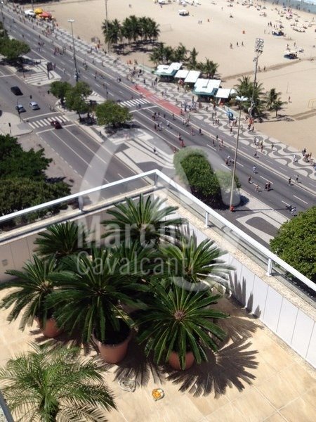 Magnífica cobertura com vista deslumbrante para toda orla de Copacabana em prédio icônico. Ampla, muito iluminada. Confortável living, sala de jantar, escritório, lavabo. 5 suítes sendo 3 no primeiro piso, 2 no segundo, máster com 70m². Terraço no terceiro piso, home theatre. Sala de almoço, copa cozinha, 2 dependências. 3 vagas de garagem.
