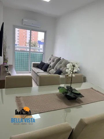Lindo Apartamento com móveis planejados, com 80 metros quadrados. Sala dois ambientes, dois dormitórios sendo uma suíte com sacada grande, banheiro social, cozinha e lavanderia separadas. Apartamento amplo e arejado próximo à praia, de frente para rua, vista livre com sacada grande envidraçada, com móveis planejados nos dormitórios, cozinha e lavanderia, com 3 ar condicionados, banheiros e sala com espelhos e iluminação.