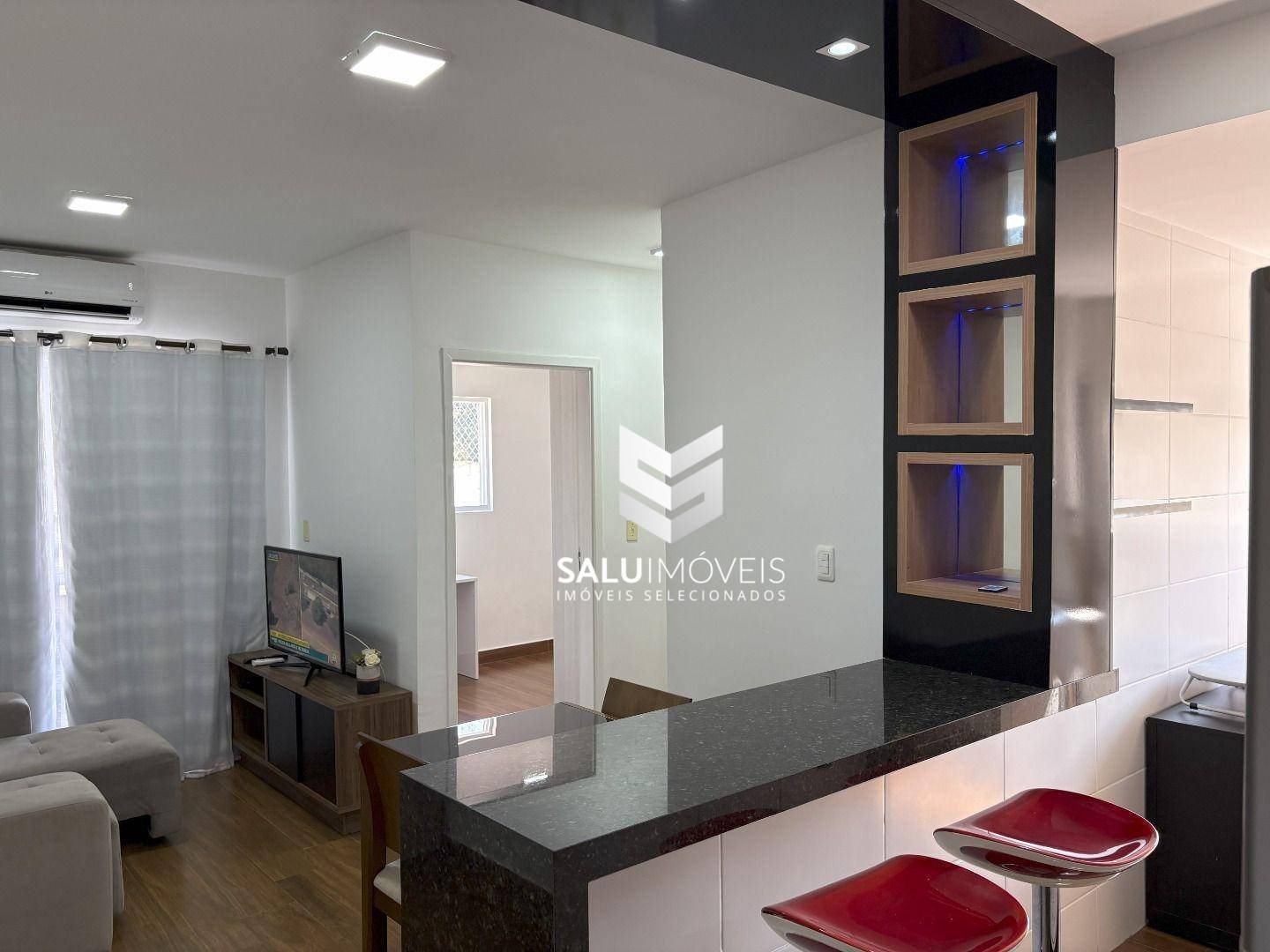 Código do Imóvel: CM1701534-5. Se procura um lar que una elegância, conforto e uma localização privilegiada, este apartamento é a escolha perfeita. Situado no 4º andar do exclusivo condomínio, está a apenas alguns minutos do shopping. São 57 m² muito bem distribuídos: - 2 dormitórios (sendo 1 suíte acolhedora); - 2 banheiros modernos; - Sala em 2 ambientes com bar iluminado; - Varanda gourmet com pia; - Ambientes com armários planejados (cozinha, quartos e banheiros); - 1 vaga de garagem. Totalmente mobiliado e equipado: - Eletrodomésticos: fogão, geladeira, micro-ondas e máquina de lavar; - Sala com sofá, banquetas, mesa de jantar para 4 lugares e TV; - Suíte com cama box casal e armário modulado; - Segundo quarto com armário modulado e mesa de escritório; - Ar-condicionado de 12.000 BTUs; - Cortina blackout; - Iluminação 100% em LED. Condomínio completo com lazer e segurança 24h para toda a família: 2 piscinas, academia, quadra poliesportiva, quiosques com churrasqueira, cinema, brinquedoteca, espaço mulher, home office, espaço pet e boulevard de serviços com conveniência e lavanderia. Não perca essa oportunidade e agende a sua visita. Disponibilidade e valor passível de alteração sem aviso prévio.