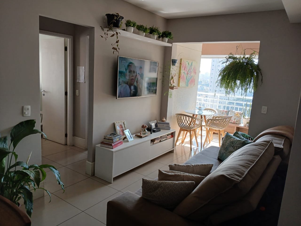 Apartamento com 2 varandas e sol o dia todo. A sacada gourmet, com vidros, está nivelada com a sala. Porcelanato nos quartos e na sala. Tem armários nos banheiros e na cozinha. A vaga é fixa e grande, suficiente para picapes. A área de lazer é excelente, com quadra, parquinho para crianças, brinquedoteca, salão gourmet anexo ao salão de festas e churrasqueira. O mercadinho interno é pertinho da academia, da sauna e da piscina. Portaria 24 horas.