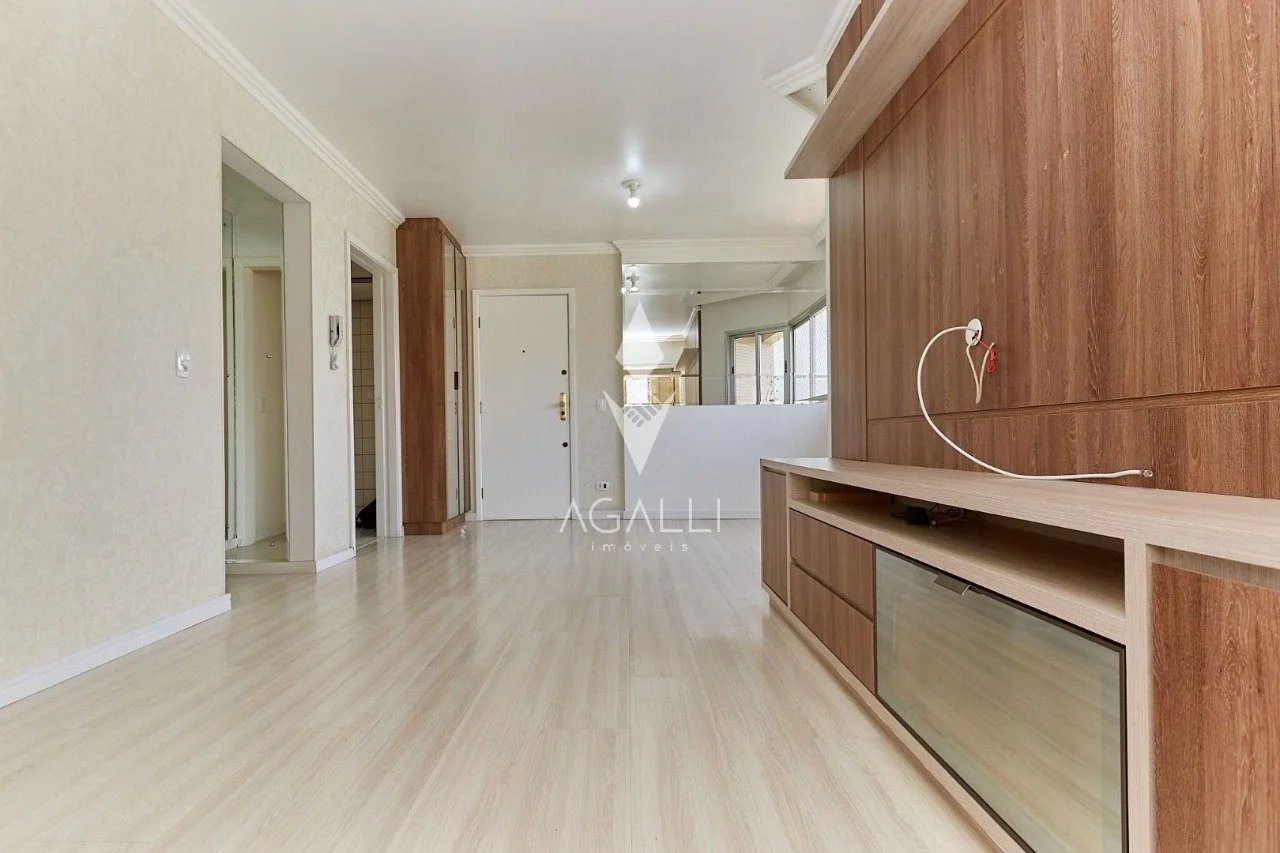 Apartamento à venda com planta bem distribuída e acabamentos pensados para conforto e funcionalidade. A área íntima conta com três dormitórios, sendo uma suíte com sacada, todos com marcenaria planejada. A sala é ampla, com integração para dois ambientes, equipada com armários para louças, rack e espelhos, proporcionando praticidade e organização. A cozinha possui armários sob medida e conexão direta com a lavanderia, igualmente planejada. O imóvel dispõe ainda de banheiro social e sacada com churrasqueira a carvão, fechada com vidro, ampliando o uso do espaço em diferentes épocas do ano. O apartamento oferece duas vagas de garagem paralelas, garantindo facilidade de acesso e manobra. Diferenciais do imóvel: - Marcenaria planejada nos dormitórios, cozinha, lavanderia, banheiros e sacadas - Luminárias instaladas em todos os ambientes - Piso laminado de madeira na sala e dormitórios - Porcelanato nas áreas frias - Fechamento em vidro nas sacadas - Telas de proteção nas janelas O condomínio dispõe de infraestrutura de lazer e segurança, incluindo: - Salão de festas mobiliado - Academia - Portaria - Sistema de monitoramento por vídeo Localização estratégica em rua principal do bairro, com fácil acesso a supermercados, farmácias, restaurantes e diversos serviços essenciais, garantindo praticidade no dia a dia.