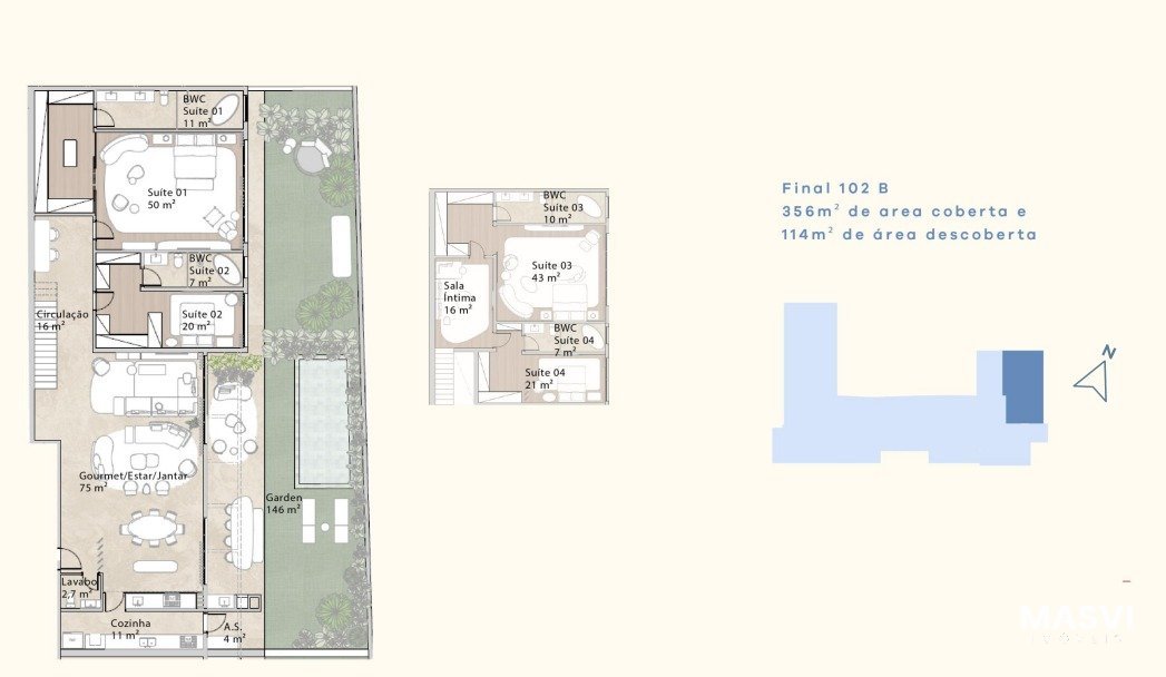 Este amplo apartamento garden combina sofisticação e funcionalidade em uma planta espaçosa e bem distribuída. São 4 suítes, área social integrada, lavabo e cozinha, perfeito para viver e receber com estilo. Ideal para quem busca o conforto de uma casa com a segurança e a comodidade de um condomínio.