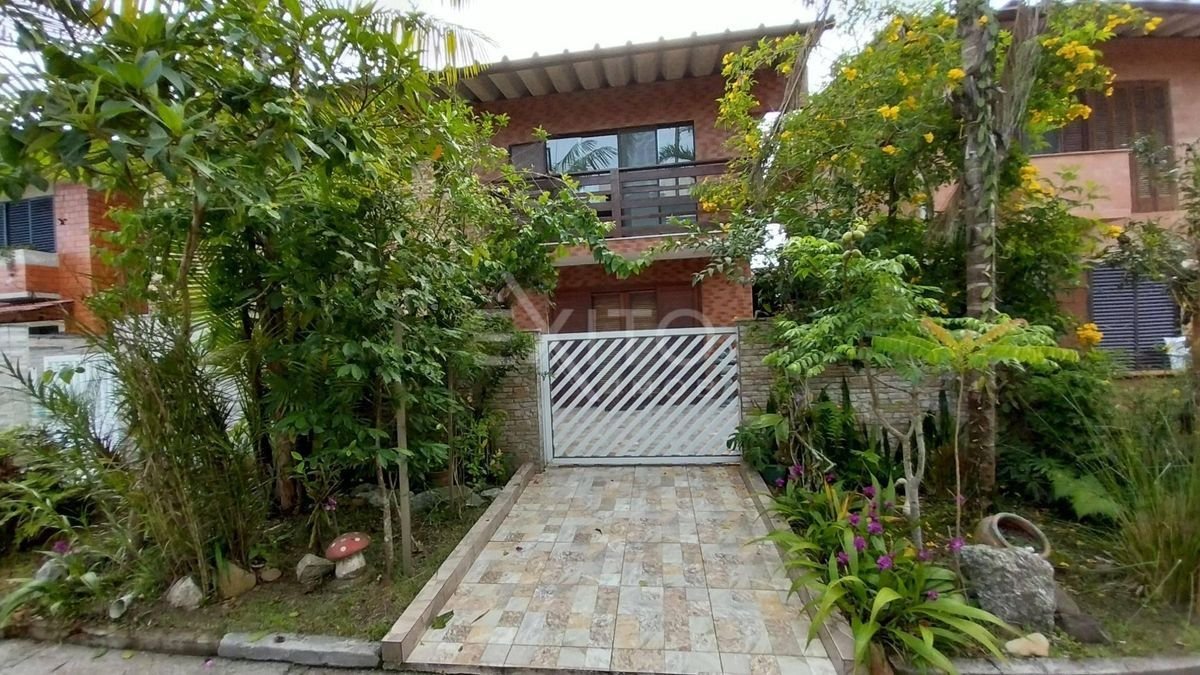 Imóvel perfeito para quem ama o mar e a natureza! Sobrado em Villagio, 3 dormitórios no piso superior com ar condicionado, 2 banheiros, sala e cozinha americana amplas, área de serviço interna, quintal na frente e nos fundos com churrasqueira, pia, telhado bem estruturado. Condomínio arborizado, com paisagismo perfeito e bem cuidado, saída direto para a praia, quadra de beach tennis, campo de futebol, salão de jogos. ACEITA PERMUTA! Para maiores informações, entre em contato. Este imóvel tem as seguintes características: Básico: Água