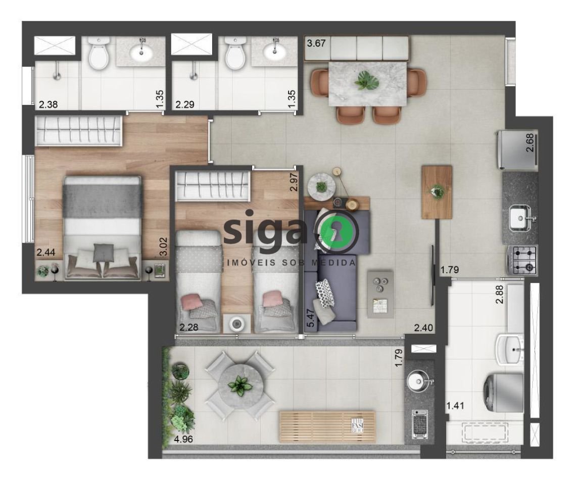 Apartamento à venda em Santo Amaro com 67 m², 2 quartos, 1 suíte, 1 vaga