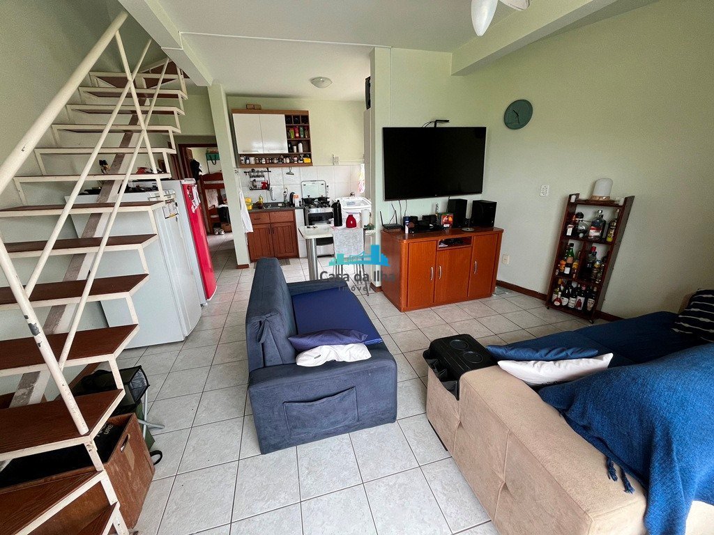 Belo apartamento duplex de 2 dormitórios na praia dos Açores (Pântano do Sul) com vista permanente para o mar, 1 vaga de garagem livre e coberta, sacada fechada com churrasqueira a carvão, móveis sob medida e em excelente localização, a 2 quadras do mar. Aceita financiamento bancário. Escritura pública.