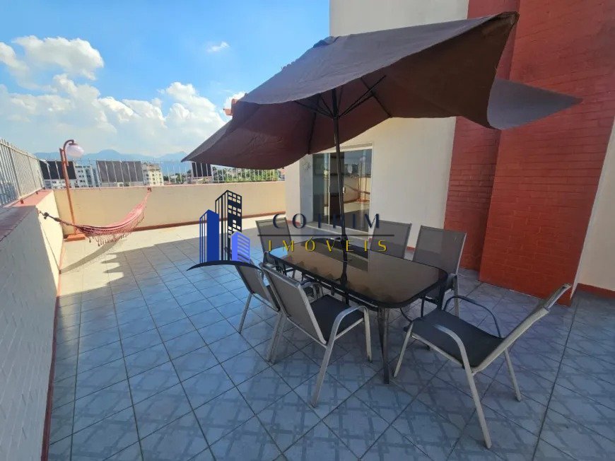 Maravilhosa Cobertura linear com vista panorâmica em 360 graus. Composta de: 200 m² de área útil / 245 m² de área total / Terraço de frente com amplo espaço externo / Churrasqueira coberta / Sauna / Sala em 03 ambientes / Cozinha com armários planejados / Dependência de empregada completa / Banheiro social com box e armário / 03 quartos com armários planejados, sendo 01 suíte. Apartamento Mobiliado Direito a 02 vagas de garagem. Localização privilegiada na Estrada do Pau-Ferro, perto de mercados, padarias, farmácias, lotéricas, escolas e restaurantes. Conta ainda com fácil acesso à Linha Amarela e Grajaú Jacarepagua. Diversas linhas de ônibus possibilitam fácil acesso a diversos bairros do Rio de Janeiro. E isso tudo com a segurança de um condomínio fechado, com portão eletrônico e portaria 24 horas. Agende já sua visita e venha conferir essa oportunidade!