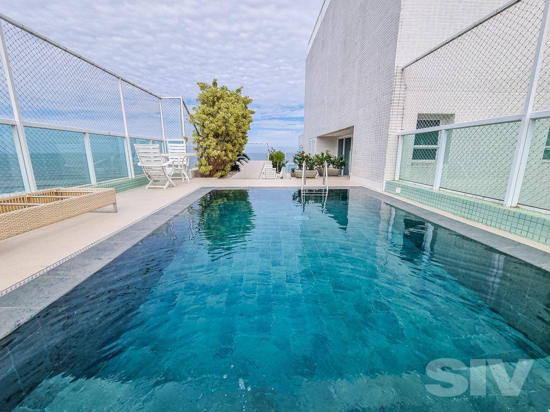 Cobertura pé na areia à venda na Riviera de São Lourenço, Módulo 06, com 677 m² de área útil e vista total para o mar. No primeiro piso, são quatro suítes climatizadas, living para dois ambientes, cozinha integrada, banheiro social, varanda com vista deslumbrante, área de serviço e quarto de apoio com banheiro. O segundo piso oferece salas aconchegantes, sauna seca, varanda gourmet, piscina com quintal e banheiro exclusivo para a área externa. Com quatro vagas de garagem e sol da manhã, essa cobertura une conforto, sofisticação e uma paisagem única. O condomínio conta com lazer completo: brinquedoteca, playground, espaço gourmet, SPA, salão de jogos e festas, fitness, sauna seca, piscina aquecida e quadra de tênis. Ideal para quem busca exclusividade e qualidade de vida à beira-mar.