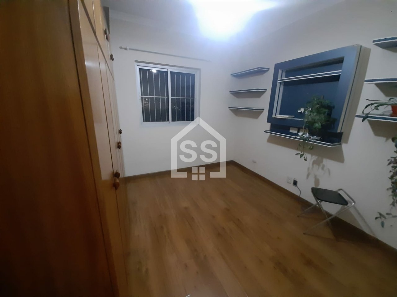 APTO COM PISO DE MADEIRA E ARMÁRIOS.