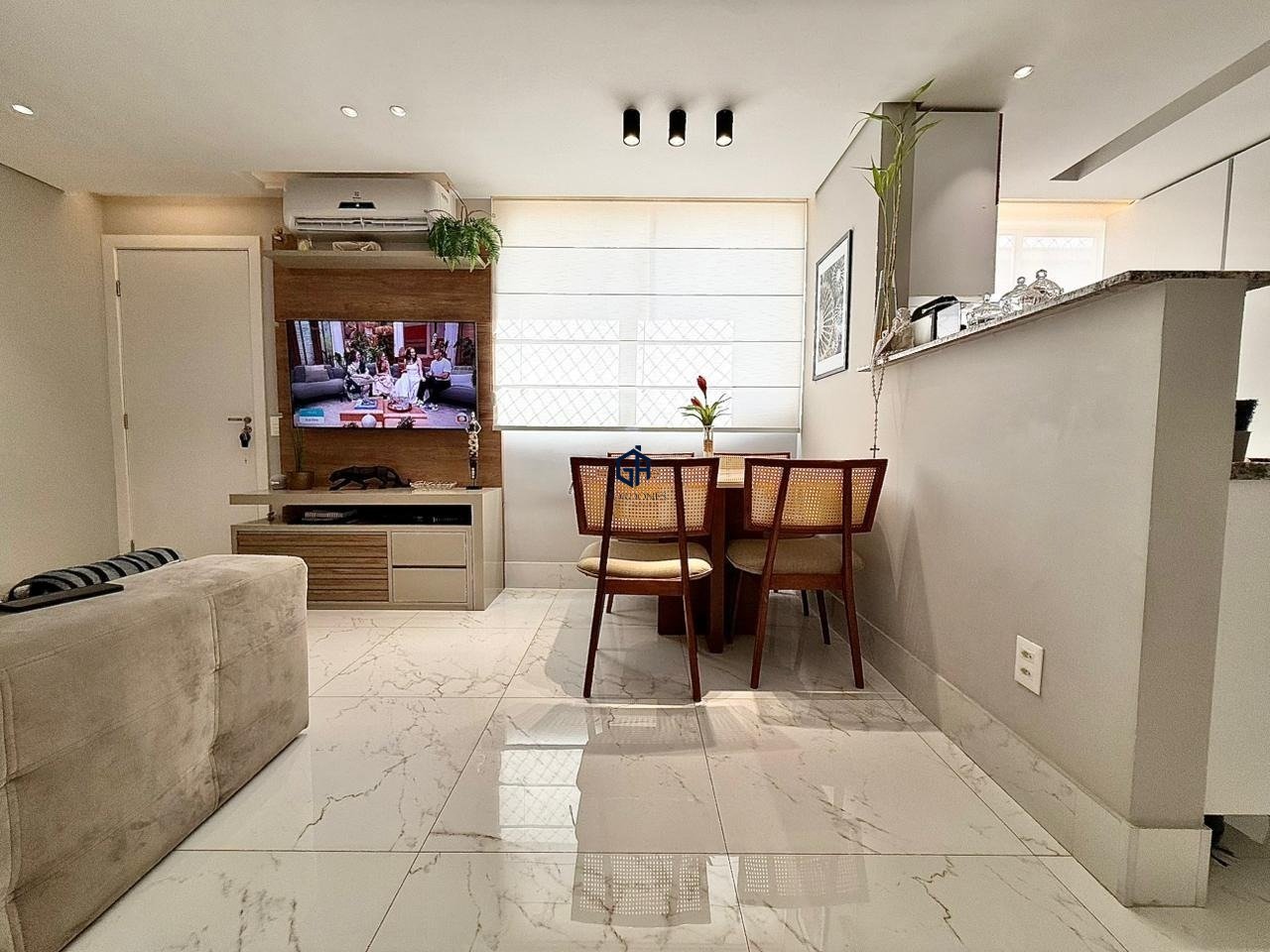 APARTAMENTO - SÃO JOÃO BATISTA Apartamento impecável entrando para venda, é daqueles que não precisa literalmente fazer nada, 100% reformado, montado e decorado e com diversos diferenciais, o que o torna ainda mais especial. Localizado no melhor ponto do São João Batista, em frente à Praça e esquina com a Av João Samaha, diversos comércios, linhas de ônibus e saídas do bairro. Prédio de pouca idade, (2019), com guarita para porteiro (embora os moradores preferiram manter sem porteiro), sistema de câmeras, gás canalizado, pintura do prédio muito nova e 1 vaga de garagem. Condomínio econômico de baixo custo e super organizado e estruturado. Apartamento no último andar (4°), sem vizinhos em cima, muito silencioso, privacidade total nas janelas, composto assim: Ao entrar no apartamento, nos deparamos com um lindo piso em porcelanato, rebaixamento do teto em gesso e projeto luminotécnico, divido em 2 ambientes confortáveis e com integração à cozinha americana, essa rica em armários, sob a pia e sobre a pia, área de serviço conjugada com máquina lava e seca. 1 banho social, 100% revestido, com porcelanato, box chão teto, alumínios em preto, armário, espelho e bancada. 2 quartos, ambos ricos em marcenaria e cabeceira com criado no quarto do casal. Apartamento todo reformado, foram trocados pisos, revestimentos, bancadas, além de gesso, iluminação, os apagadores também foram trocados, além de marcenaria de padrão superior em todo o apartamento. Itens de valor: - Ar condicionado na sala que gela todo o apartamento; - Bancada do banheiro em material de alta qualidade; - Bancadas em granito na cozinha e área de serviço; - Porcelanato em todo o apartamento; - Água filtrada na pia da cozinha; - Sistema de bombeamento em todas as torneiras e chuveiro; - Chuveiro e Ar condicionado de 220v; - Todos os registros do apartamento são de primeira linha; - Torneiras em aço inox; - Tela de proteção nas janelas; - Vista definitiva e com privacidade total nas janelas dos quartos; - Rack laqueado; Vai permanecer no imóvel: - Ar condicionado; - Cortinas em todos os ambientes; -