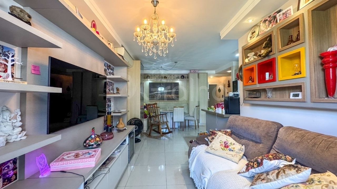 Excelente cobertura no João Paulo, com 89,98 m² de área privativa, mobiliada, living para 2 ambientes integrado a uma ampla sacada onde pega o delicioso sol da manhã, cozinha americana com armários planejados, área de serviço separada, banheiro social, piso porcelanato, ar split nos cômodos, persiana nas janelas, hidrômetro individual, 2 vagas de garagem livres e cobertas e 1 hobby box. Condomínio com piscina aquecida, jardim, sala fitness, salão de festas com churrasqueira coletiva, circuito de TV, playground, elevador, zelador, aceita pets.