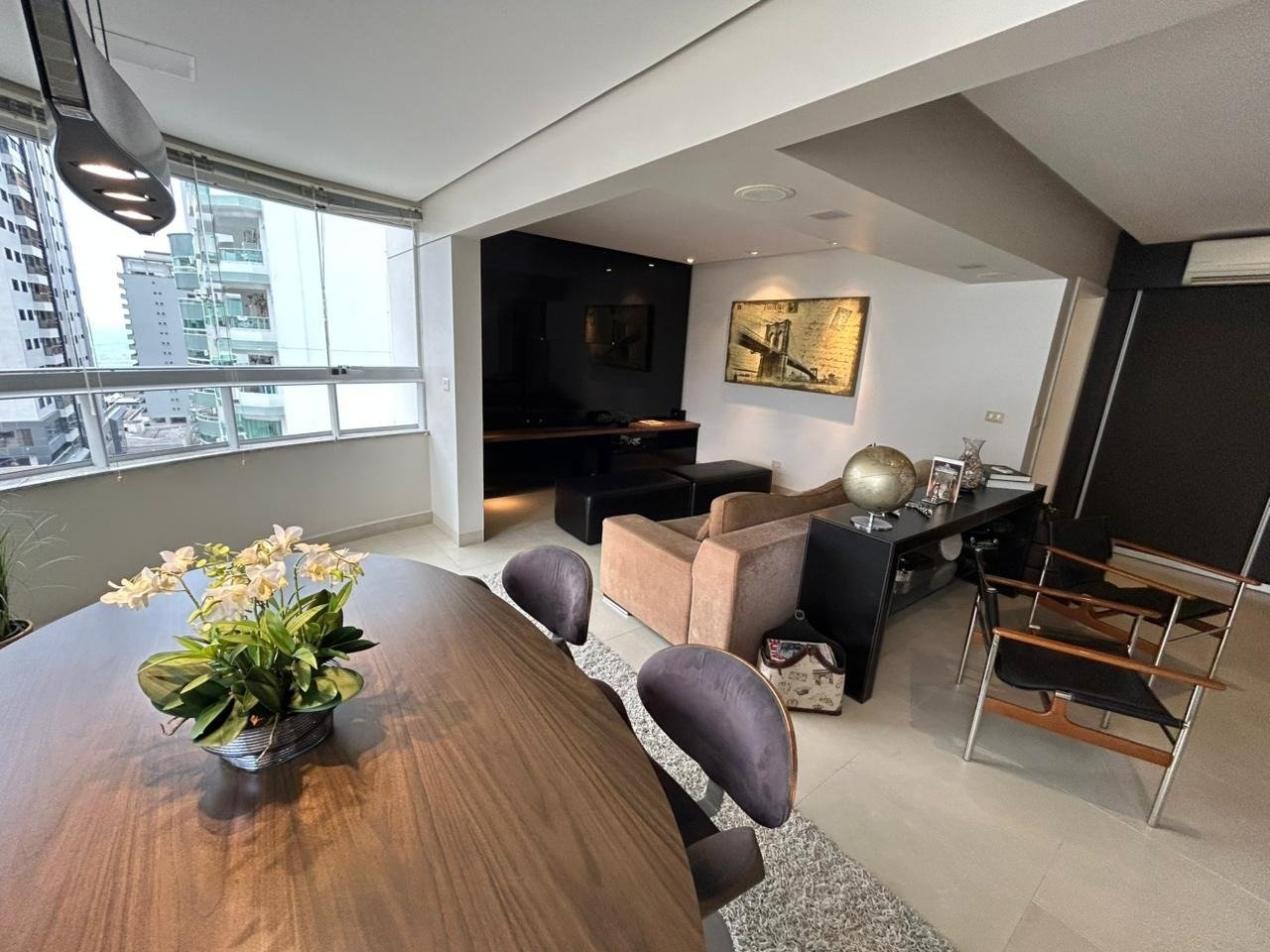 Apartamento mobiliado e decorado localizado no centro, com 111,50 m² de área útil, conta com 3 quartos, sendo 2 suítes e 2 vagas de garagem.