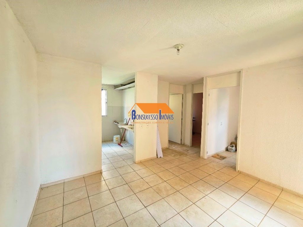 Apartamento de 2 quartos, Bairro Granja de Freitas com: Sala 2 ambientes em cerâmica, 2 quartos em cerâmica, cozinha azulejada até a metade, banheiro social, área de serviço. Estacionamento. Prédio de 4 andares em pintura.