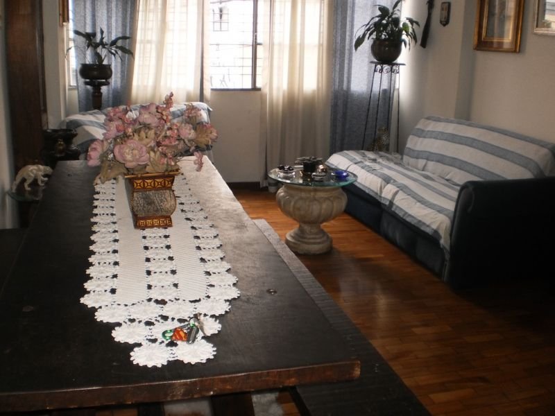 Prédio de 5 pavimentos, portão eletrônico, interfone, 1 vaga livre. Sala grande para 2 ambientes com piso em taco sintecado, 3 quartos amplos com armários, piso em taco, Banho social muito grande com piso em granito, Cozinha enorme com armários, piso em cerâmica e bancada em inox, Dependência completa de empregada, área de serviço espaçosa, 1 vaga livre.