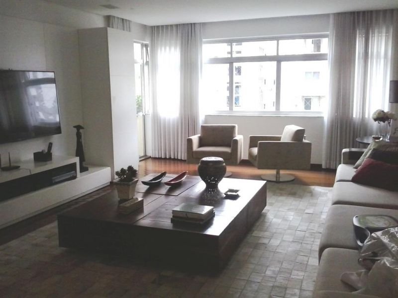 Excelente prédio na melhor localização de LOURDES, com 11 pavimentos, 1 por andar, 2 elevadores, porteiro físico 24 horas, salão de festas. Salão enorme para 3 ambientes com piso em tábua corrida, varanda com piso em granito, sala de TV, sala de jantar, 4 quartos amplos, todos com armários novos, forrados e divididos, 1 quarto com closet, banho social com box blindex, armários, suíte com box blindex, armários, hidromassagem, cozinha ampla, clara e arejada, armários, piso e bancada em granito, área de serviço muito espaçosa, dependência completa de empregada, 2 vagas em linha, cobertas e demarcadas.