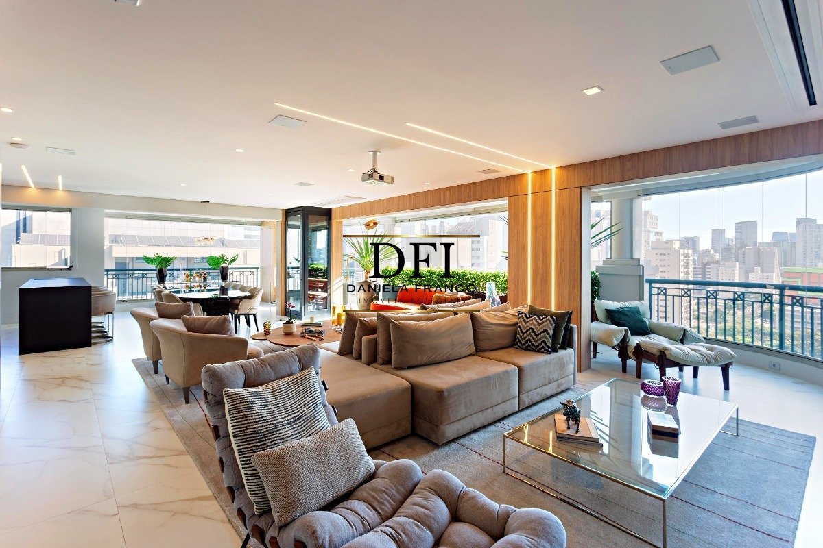 Espetacular apartamento, com lindo projeto, no melhor condomínio do Brooklin. Com 238 m², amplo living com sala de TV, sala de estar e sala de jantar, integrado a varanda gourmet, originalmente com 4 suítes, atualmente com 3 suítes, sendo a master com sacada e closet, e a quarta suíte foi transformada em um belo home office / home theater, cozinha com copa integrada, apartamento repleto de armários planejados, área de serviço espaçosa, dependência de serviço completa, ar condicionado em todos ambientes, 4 vagas de garagem e depósito privativo no subsolo. Condomínio com uma ótima infraestrutura de segurança e lazer tipo clube com piscina adulto e infantil, piscina coberta climatizada, segurança 24 horas, guaritas com clausura blindada, churrasqueira, jardim, pista de cooper, playground, quadra poliesportiva, fitness, salão de festa, salão de jogos, brinquedoteca, sauna e amplo estacionamento para visitante. Localizado próximo aos principais comércios e serviços, e fácil acesso às principais vias da região.
