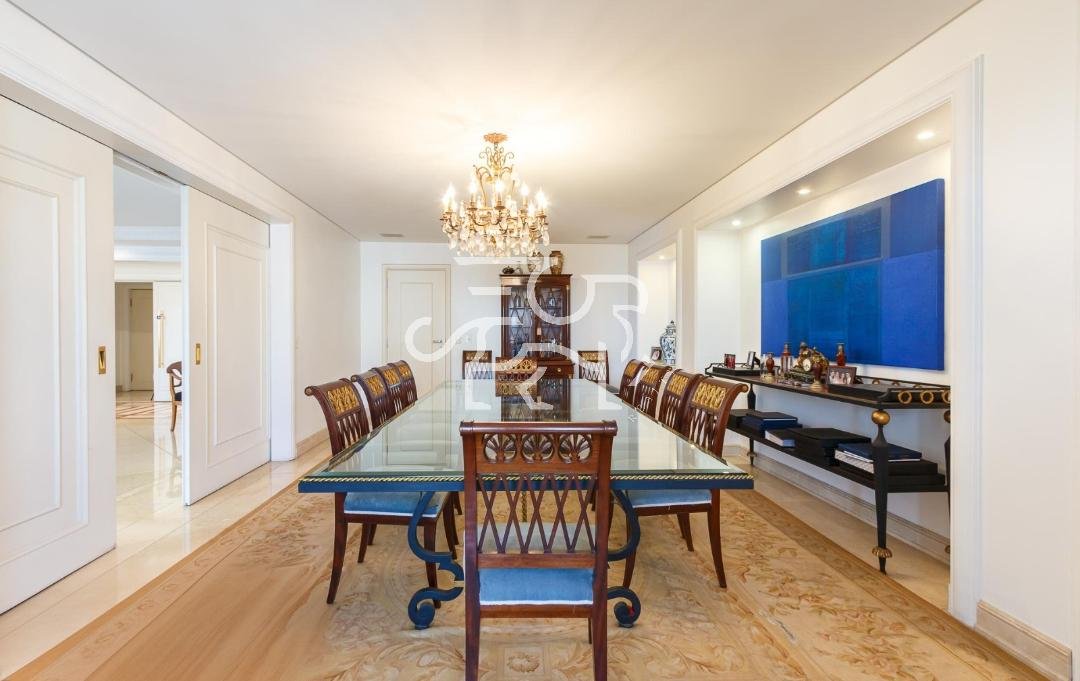 Código do Imóvel: CM1777032-6 - Imóvel anunciado, através da plataforma. Descubra um clássico de 430 m² assinado por Sig Bergamin, no 13º andar do Edifício Coral Bay. São 4 suítes com varanda e banheira, sala de 150 m² em mármore Crema Marfil com lareira, home theater e cozinha funcional. Exclusividade com 5 vagas, segurança 24h, lazer completo e localização nobre com vista eterna para área tombada. A poucos passos da Paulista e do Pátio Higienópolis. Valor: R$ 11,9 mi.