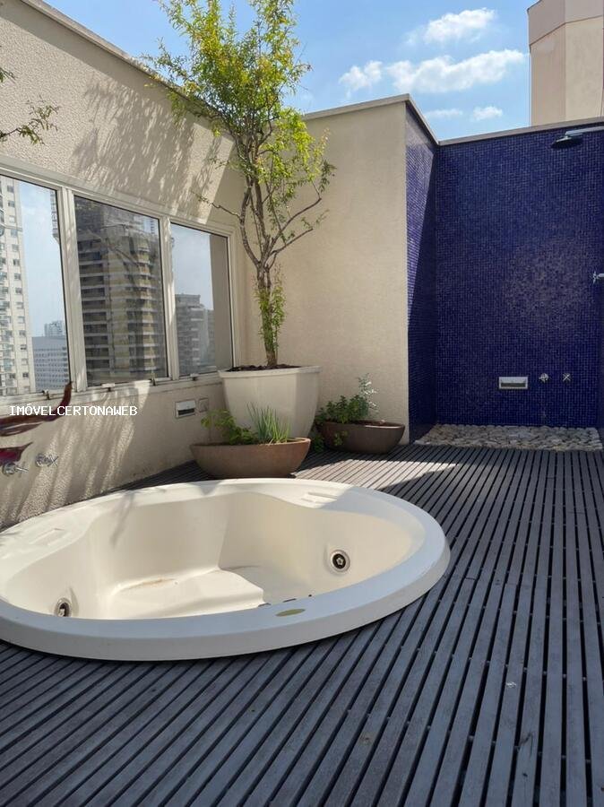 Lindíssima cobertura no local mais privilegiado da Vila Nova Conceição. São 390m2 de puto requinte com vista panorâmica de 270. Dois andares os quais ambos são atendidos pelo elevador. Hall social, 2 suítes (master com sala de banho e closed), 2 cozinhas, 5 vagas, ar condicionado, sauna, piscina, aspiração de pó central e muita sofisticação nos acabamentos. Endereço único! Veja as fotos e agende uma visita. - Características: Ar Condicionado, Móveis Planejados, Portão Eletrônico, SPA Hidromassagem, - Cômodos: Área de Serviço, Cozinha, - Proximidades: Bares e Restaurantes, Escola, Farmácia, Shopping Center, Supermercado.