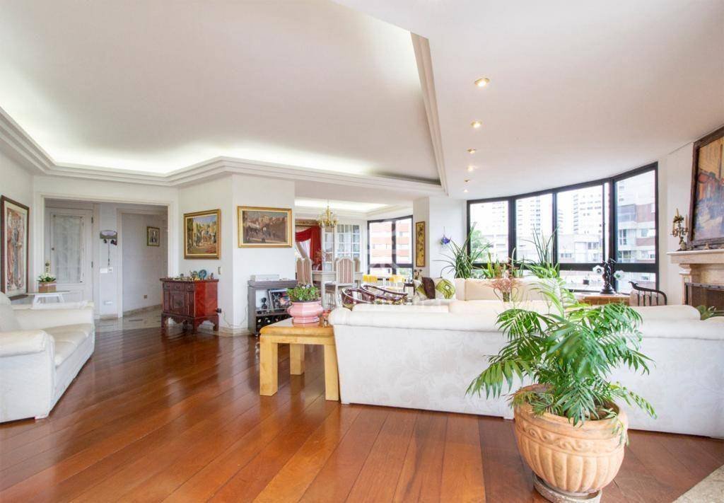 Código do Imóvel: CM1704756-8 380m², 4 suítes, suíte master com closet e banheira, 2 pia dupla. Sala de estar com lareira, sala de jantar, sala de almoço, sala de TV com terraço fechado, sauna, wc e chuveiro. Terraço aberto com churrasqueira e piscina. Adega, cozinha com 4 cubas, mesa para refeição rápida, área de serviço com 2 tanques, armário para roupa de cama e banho, 2 quartos de empregada e um wc. 6 vagas de garagem e quarto de depósito, box para lavagem de carros. Quadra de tênis, salão de festas com 2 wc e cozinha. Fitness e sauna seca e úmida, 2 piscinas adulto e infantil, ambas aquecidas. Gerador, portaria blindada, elevadores com senha e vigilância motorizada 24 horas.