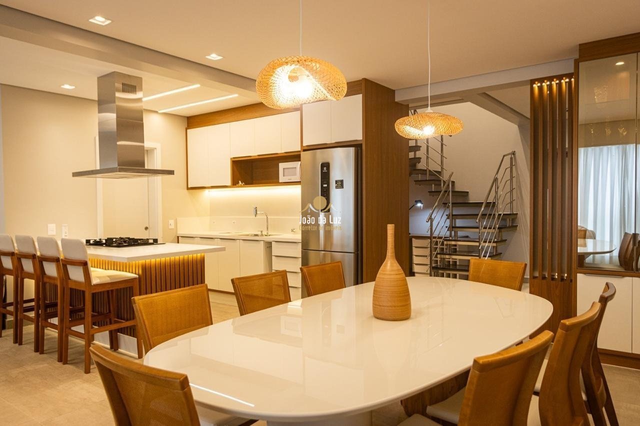Imagine viver a poucos passos do mar, em uma cobertura duplex onde cada detalhe foi pensado para oferecer conforto, privacidade e sofisticação. Localizada a apenas 50 metros da praia da Cachoeira do Bom Jesus, esta cobertura recém-entregue reúne tudo o que se espera de um imóvel exclusivo em Florianópolis. Com 153 m² privativos, o apartamento apresenta uma planta bem distribuída em dois pavimentos, com três suítes, quatro banheiros e um lavabo. Os ambientes sociais foram projetados para integrar convivência e praticidade: sala de estar e jantar climatizadas, cozinha contemporânea em ilha com bancada em quartzo branco e uma varanda com churrasqueira que convida a aproveitar bons momentos com família e amigos. O projeto valoriza iluminação natural e ventilação cruzada, criando ambientes sempre arejados e agradáveis. A suíte master se destaca pelo banheiro elegante, revestido em quartzo branco, com duas cubas e armários amplos. Logo no hall de entrada, um espaço versátil foi integrado para funcionar como escritório ou adega. A lavanderia é funcional e equipada, e a escada interna conta com armário planejado que otimiza o uso do espaço. O imóvel dispõe ainda de duas vagas de garagem independentes e hobby box. O condomínio oferece estrutura completa com brinquedoteca, espaço gourmet e um terraço coletivo com vista 360° – um convite para contemplar Florianópolis de um novo ângulo. Uma cobertura que une localização privilegiada, vista para o mar e acabamento de alto padrão, ideal para quem deseja viver com conforto, exclusividade e qualidade de vida na praia da Cachoeira do Bom Jesus.