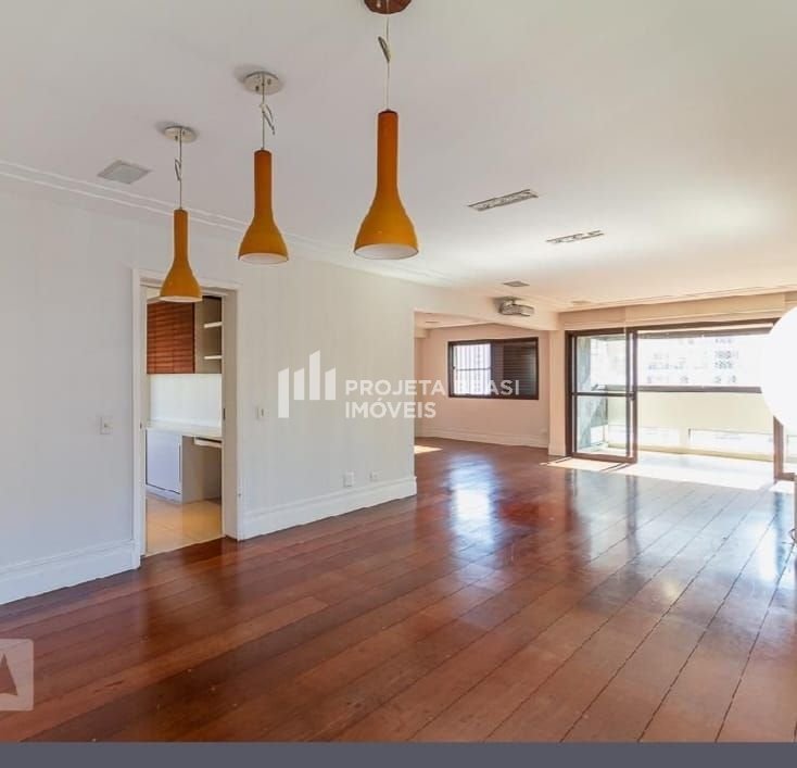 Apartamento de 230 m² em Moema, com 3 suítes, ampla sala com varanda, lavabo, cozinha com copa, área de serviço, dependências de funcionário e 4 vagas de garagem. Condomínio com academia, piscina, salão de festas, salão de jogos, playground, quadra e churrasqueira. Próximo à Igreja de Moema e do metrô.