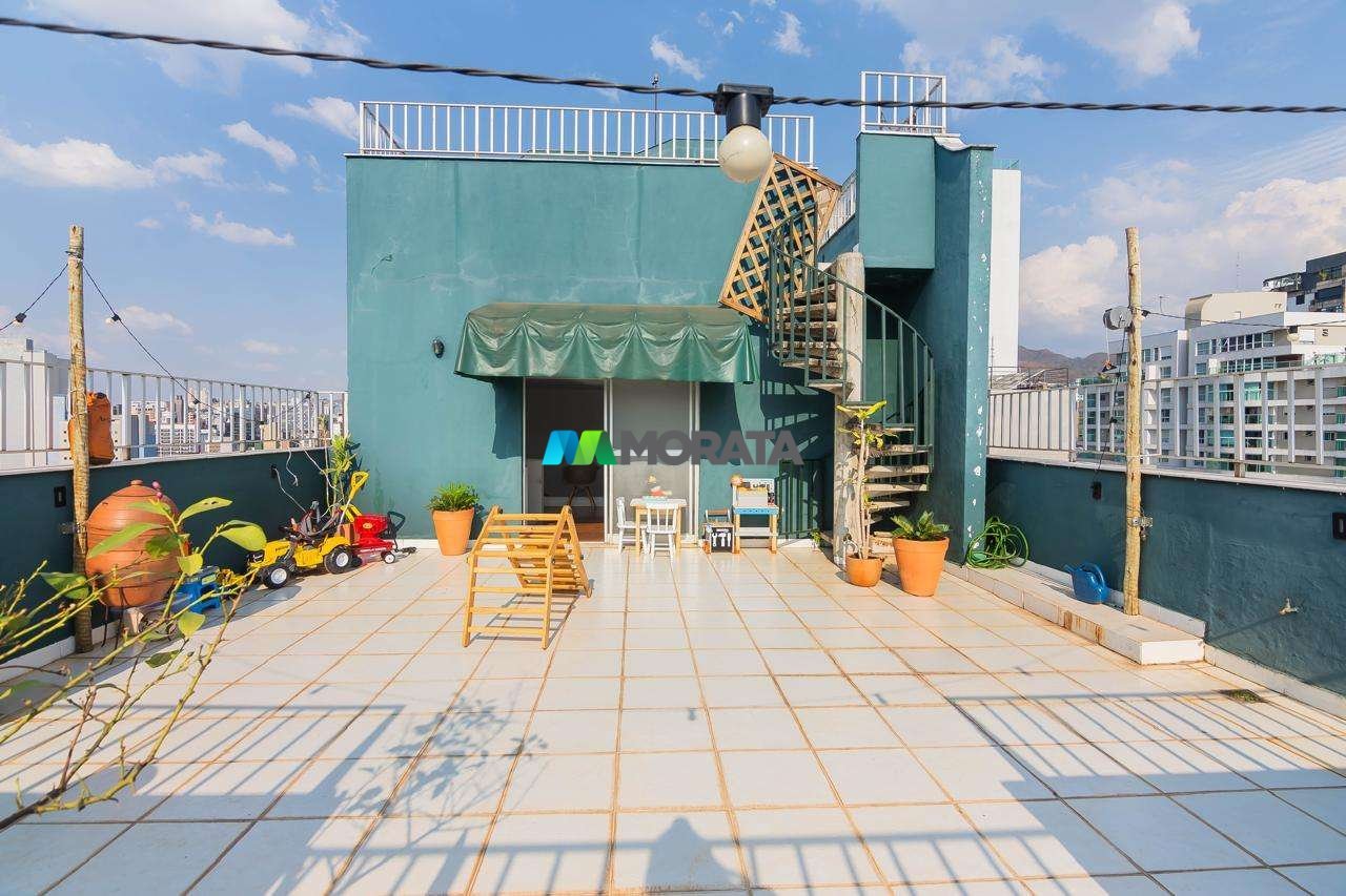 COBERTURA À VENDA - 257 m² - SANTO ANTÔNIO - BELO HORIZONTE (MG) * Área total: 257 m² 1º Pavimento * Sala de estar ampla e acolhedora, com piso em tábua corrida. * Cozinha planejada com bancadas em granito, armários planejados e piso em tábua corrida. * 03 quartos com armários planejados, incluindo uma suíte com acabamento refinado. * Banheiros (social e suíte) com cerâmica de primeira linha, box em blindex e espelhos, oferecendo conforto e estilo. * Área de serviço independente. 2º Pavimento * Ampla sala com piso em tábua corrida, versátil para home office, sala de TV ou espaço de convivência. * Lavabo moderno com espelho e acabamento de qualidade. * Espaço descoberto, ideal para criação de um jardim, área de lazer ou projeto personalizado. 3º Pavimento * Cobertura com espaço descoberto, piscina privativa e sauna. * 3 vagas de garagem livres, cobertas e demarcadas. INFRAESTRUTURA: Hall de entrada decorado, circuito interno de câmeras, elevador social, jardins, gás canalizado, segurança, salão de festas, espaço gourmet, quadra esportiva, piscina e churrasqueira. Valores sujeitos a alteração sem aviso prévio.