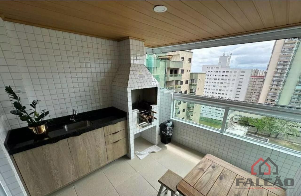 Apartamento em Praia Grande, localizado no bairro Aviação, 113m², sala ampla para 2 ambientes com varanda gourmet e churrasqueira, 3 dormitórios sendo 1 suíte, wc social, cozinha e área de serviço. Edifício com portaria, área de lazer completa e 2 vagas de garagem coletivas. Excelente localização, próximo à praia.