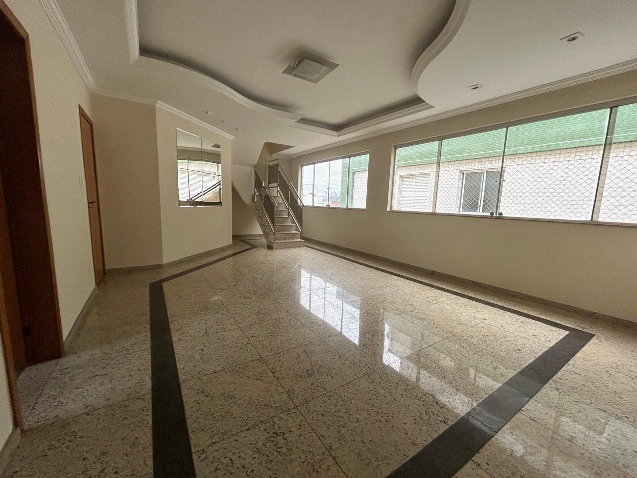 Cobertura com vista definitiva, no bairro Castelo, região da Pampulha! Prédio com alarme, câmeras de segurança, elevador, hall social decorado, revestido com pastilhas e vidros temperados. 1º pav.: Sala para 02 ambientes com piso em granito, teto rebaixado com iluminação planejada. 2 quartos com janelas em veneziana e armários; Quarto da suíte com closet montado, banho com hidromassagem, espelho e armário. Banho social com armário, box e espelho. 2º. pav. Escada em granito e corrimão em aço escovado; Sala; Quarto sendo 01 suíte; Terraço com churrasqueira, bancada em granito, piscina, sauna com ducha e banho.