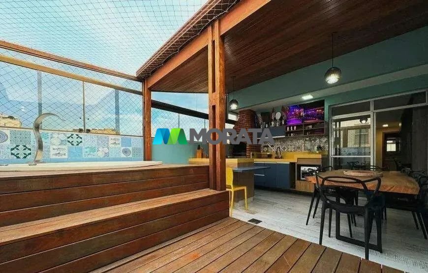 COBERTURA À VENDA - 153 m² CASTELO - BELO HORIZONTE (MG) * Área total: 153 m² 1º Pavimento: * 02 quartos com armários (sendo 01 suíte com varanda incorporada como closet) * Sala de estar com piso laminado e cristaleira embutida * Cozinha com piso em granito preto e armários laqueados * Banheiro social com bancada em granito, box em vidro temperado e armário planejado 2º Pavimento: * Sala de TV com piso laminado, teto rebaixado em gesso e ar-condicionado instalado * Banheiro social * Lavanderia funcional com armários * Área gourmet parcialmente coberta, com duas bancadas em silestone, armários de alto padrão, churrasqueira e spa com deck em madeira * 02 vagas de garagem em linha e cobertas * Em excelente localização do bairro, fácil acesso à Avenida Miguel Perrela