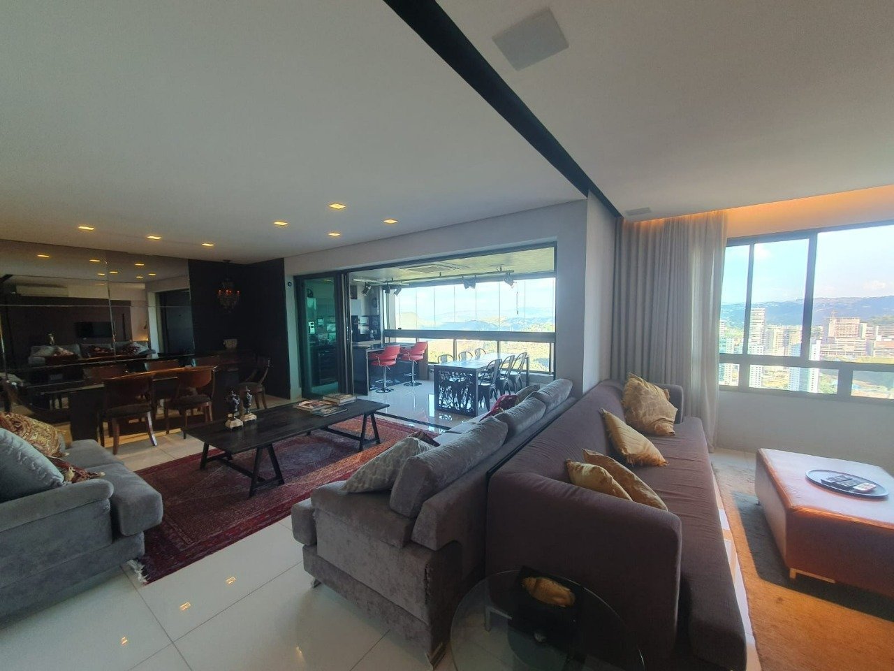 Luxuoso apartamento de 202m² semi-mobiliado. Conta com sala para 03 ambientes, iluminação planejada, piso porcelanato, lavabo, ampla varanda gourmet com linda vista, cozinha com armários planejados, área de serviço independente, dce completa, 03 suítes com armários planejados, sendo 01 master com closet e hidromassagem. Possui 03 vagas em garagem.