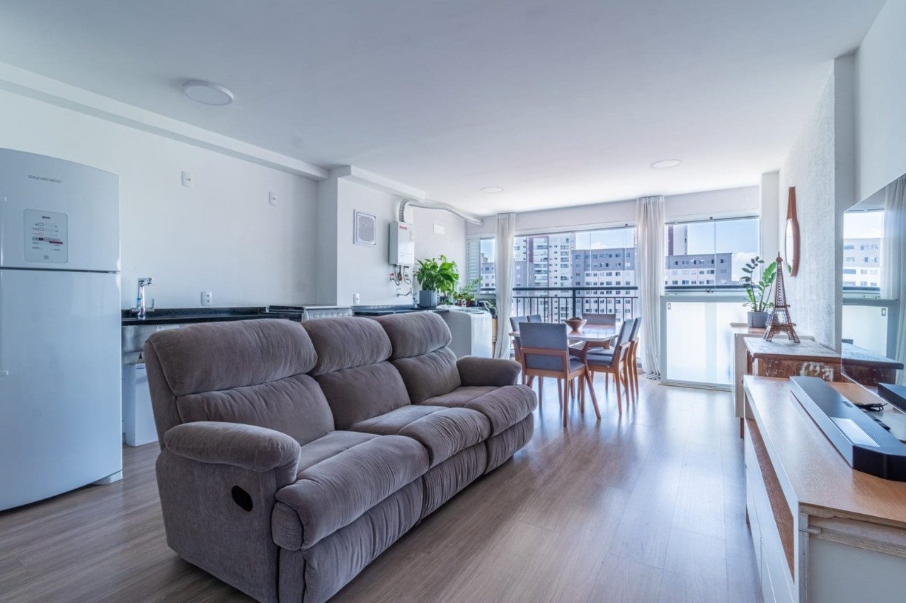Apartamento 74 m² com 3 dormitórios sendo 1 suíte, 2 banheiros + 1 lavabo, 1 vaga solta. Apartamento no 20° andar com vista panorâmica de 270° de visibilidade, nascer e por do sol, varanda gourmet integrada ao apartamento com fechamento em vidro, pré instalação elétrica e hidráulica pronta para ar condicionado, granito preto na cozinha e branco nos banheiros e lavabo. Metais especiais nos banheiros e torneira com filtro integrado na cozinha. Hall do elevador para apenas 3 aptos. Vaga privativa solta. Condomínio com acesso por biometria facial, bosque com trilha, área para pets, piscina acessível e com deque molhado, piscina infantil, playground, quadra, brinquedoteca, 2 salões de festas, academia equipada, sala fitness multiuso, 2 churrasqueiras, pista de corrida com piso emborrachado, salão de jogos, bicicletário, coworking com internet grátis, lavanderia com equipamentos, segurança e limpeza. Condomínio: R$392,00 IPTU: R$2.400,00 por ano.