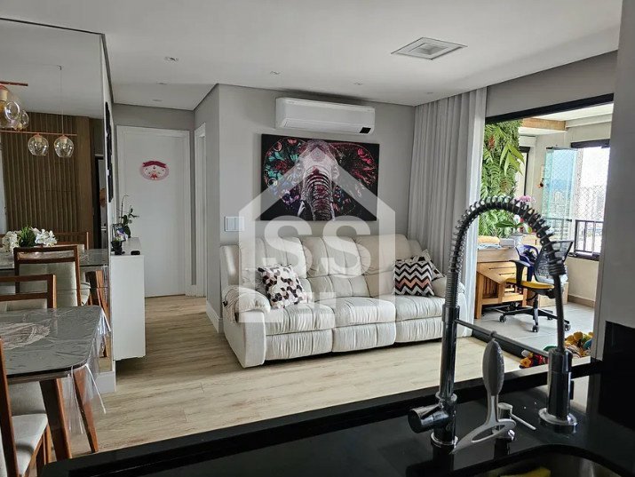 Apartamento com 2 dormitórios, 2 banheiros, 1 vaga de garagem. Mobiliado, armário embutido nos quartos. Piso vinílico em todas as áreas, exceto sacada e banheiros. Fechadura digital para segurança, telas de proteção, fechamento em vidros e cortinas. Pedras de granito na cozinha, sacada e lavanderia, pedras de porcelanato nos banheiros. Armários embutidos de alta qualidade com função freio, sendo dois guarda-roupas embutidos e espelhados na suíte e guarda-roupa embutido no quarto. Box de Blindex nos banheiros, bacias com tampas de fácil encaixe e recolhimento lento.