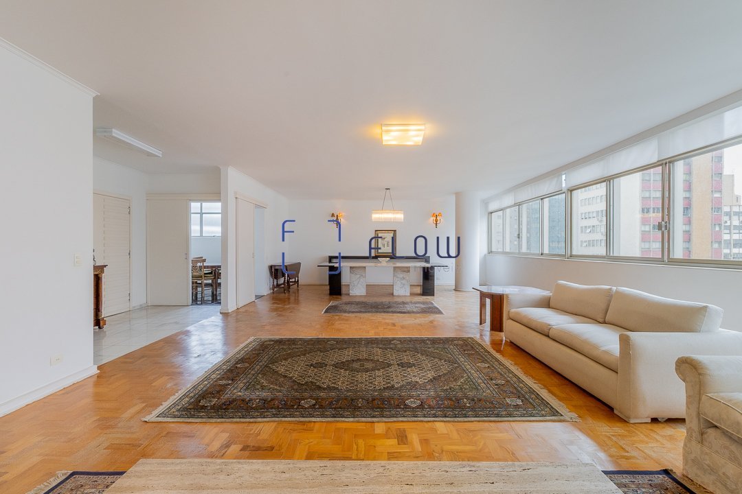 Vende apto na rua Dr. Gabriel dos Santos, 10º andar, 272m², 3 dorm, 1 suíte, ar condicionado, ensolarado. No coração da rua Dr. Gabriel dos Santos, este amplo apartamento apresenta uma experiência de morar que alia elegância, conforto e uma luminosidade rara. A chegada já encanta: um saguão refinado, imponente e acolhedor, que antecipa a atmosfera sofisticada do imóvel. Ao entrar, a amplitude surpreende. A sala de estar e jantar integradas, com janelas de ponta a ponta, formam um grande painel de luz natural, garantindo ambientes ensolarados, ventilados e com uma sensação permanente de frescor. O living é versátil, perfeito para receber com charme ou criar diversos núcleos de convivência. Um lavabo elegante complementa com discrição e estilo a área social. A sala de almoço, iluminada por inúmeras janelas, é um espetáculo à parte: clara, acolhedora e equipada com abundantes armários planejados, se transforma no espaço ideal para refeições cotidianas com conforto e praticidade. A cozinha segue o mesmo padrão de excelência: ampla, arejada, com janelas generosas, totalmente equipada e com muitos armários, oferecendo funcionalidade impecável para quem valoriza organização e rotina fluida. A área de serviço mantém a mesma qualidade, com ventilação natural, ótimos armários e dependências de empregada completas. Na ala íntima, um corredor bem distribuído conduz aos três quartos. A suíte master impressiona pelo conforto e pela elegância, com um banheiro de tirar o fôlego, pensado para proporcionar momentos de relaxamento absoluto. Os outros dois dormitórios são igualmente amplos, claros e bem ventilados, com janelas generosas e ar-condicionado em todos os ambientes, garantindo conforto térmico durante todo o ano. O apartamento conta ainda com duas vagas de garagem, um diferencial valioso na região, e está inserido em um prédio que destaca cuidado e qualidade: jardim impecável, áreas comuns bem tratadas e segurança moderna, oferecendo tranquilidade total aos moradores. Um imóvel luminoso, refinado e completo, onde cada detalhe foi pensado para quem busca viver com estilo, amplitude e conforto no melhor do bairro.