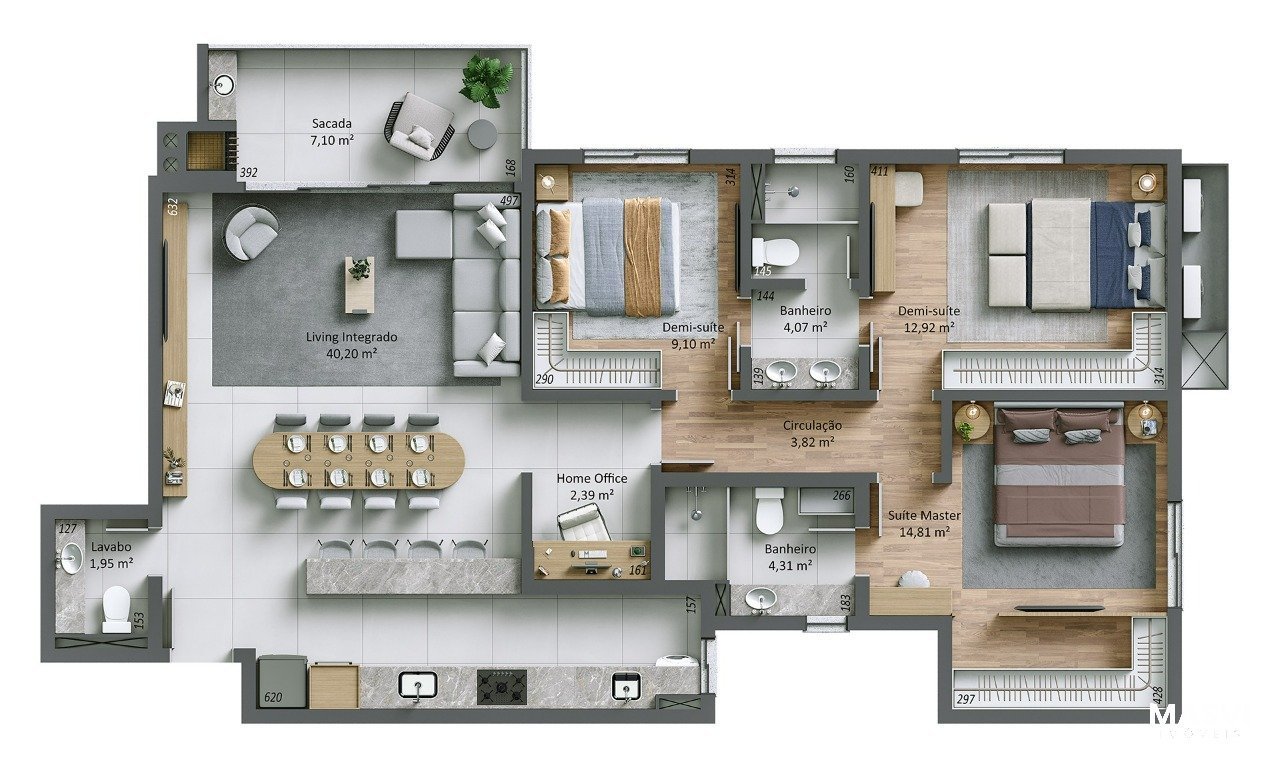Este apartamento oferece uma planta generosa e bem distribuída, pensada para quem valoriza espaço, conforto e uma rotina mais fluida. Os três dormitórios garantem versatilidade, com uma suíte que traz privacidade e dois dormitórios que se adaptam perfeitamente ao dia a dia. A área social é integrada e elegante, com sacada e churrasqueira a carvão, criando um ambiente ideal para receber com naturalidade ou aproveitar momentos mais tranquilos em casa. A circulação é bem resolvida e reforça a sensação de amplitude sem excessos. Com 117,36 m² privativos, área total aproximada de 215,00 m² e duas vagas de garagem, o imóvel faz parte de um condomínio completo com segurança, tecnologia e lazer sofisticado, pensado para viver com conforto e discrição.