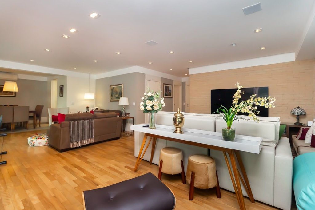 Espaço, conforto e sofisticação em um dos endereços mais desejados do Campo Belo. Este apartamento de 243 m² entrega tudo o que famílias exigentes procuram: planta generosa, reforma impecável, ambientes bem definidos e um condomínio completo, em um bairro residencial elegante e extremamente bem localizado. O imóvel passou por uma reforma completa e conta com móveis planejados em todos os ambientes, oferecendo praticidade no dia a dia, acabamento sofisticado e excelente aproveitamento de espaço. É entrar e morar, sem obras ou ajustes. PLANTA AMPLA E FUNCIONAL São 4 dormitórios, sendo 2 suítes, com destaque para a suíte master, que conta com um closet amplo e muito bem planejado, trazendo conforto, organização e privacidade ao casal. A área social é um dos grandes diferenciais do apartamento. O layout contempla: Sala de estar Sala de jantar Sala de TV Sala íntima, perfeita para momentos mais reservados, leitura, home office ou convivência familiar Essa distribuição garante integração equilibrada, sem abrir mão de ambientes mais reservados quando necessário. A planta favorece a iluminação natural, a circulação fluida e uma sensação real de amplitude em todos os espaços. CONDOMÍNIO SEGURANÇA E QUALIDADE DE VIDA O condomínio é reconhecido pelo alto padrão construtivo, excelente conservação e infraestrutura pensada para o conforto da família. Portaria 24 horas Segurança reforçada 24 horas Áreas comuns bem cuidadas Ambiente tranquilo, seguro e acolhedor Um condomínio que oferece a tranquilidade que você busca, sem abrir mão de praticidade e bem-estar. LOCALIZAÇÃO PRIVILEGIADA CAMPO BELO Viver no Campo Belo é unir o melhor de dois mundos: bairro residencial, arborizado e elegante, com infraestrutura completa ao redor. O apartamento está próximo a: Colégios renomados Universidades Supermercados, padarias e farmácias Restaurantes, cafés e academias de alto padrão Além disso, a mobilidade é um grande diferencial, com fácil acesso às principais vias da cidade e a proximidade com a estação Campo Belo do metrô e o Aeroporto de Congonhas. UM IMÓVEL PARA QUEM BUSCA QUALIDADE DE VIDA Este apartamento é ideal para famílias que desejam: Espaço real e bem distribuído Reforma impecável e marcenaria completa Suíte