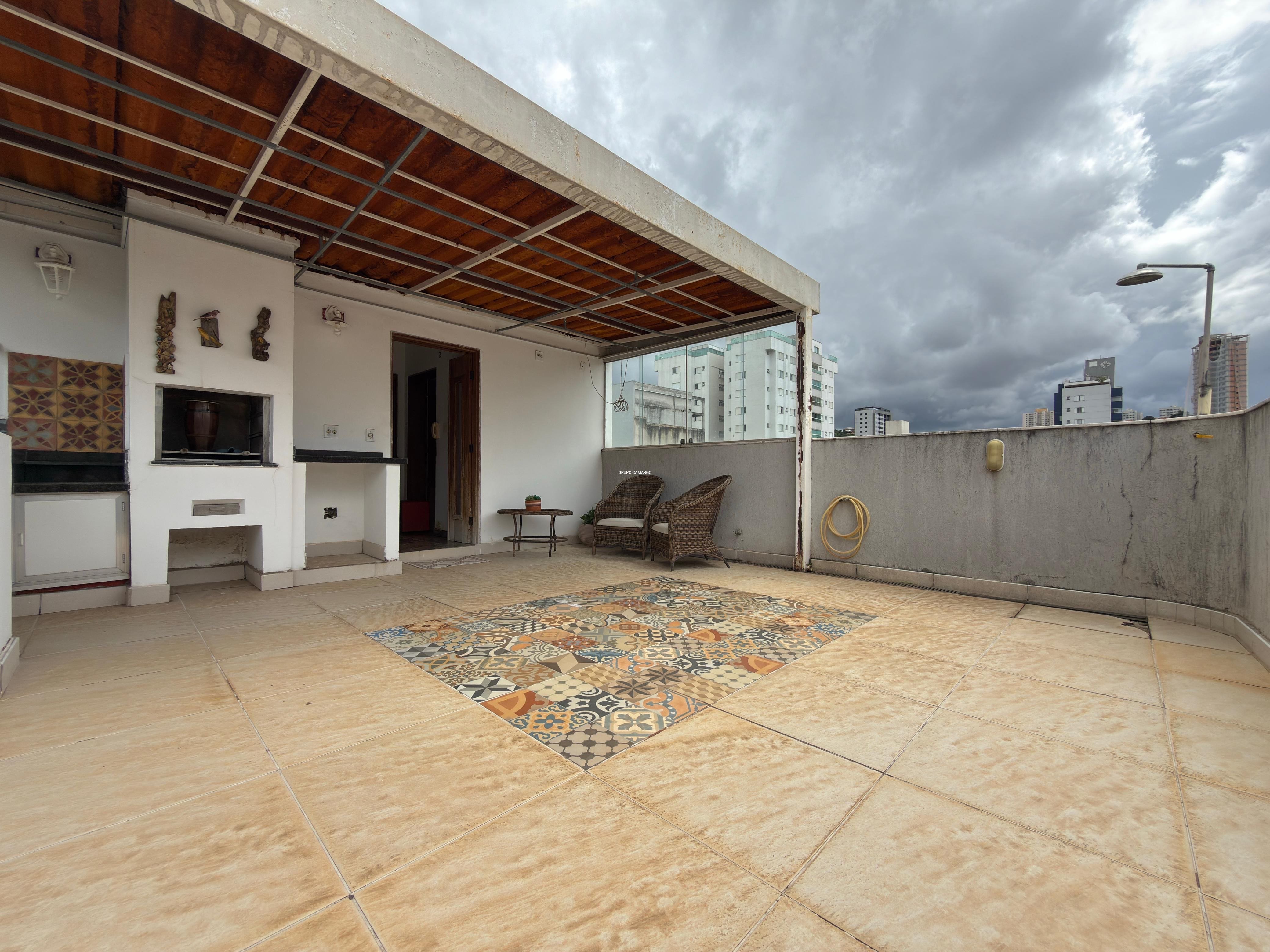 Cobertura à venda no Bairro Buritis, com 02 quartos e 01 vaga de garagem que comporta 2 carros. 1º Pavimento: 01 sala ampla para dois ambientes com piso em tábua corrida, 02 quartos amplos, todos com piso em taco de madeira e armários, sendo uma suíte com bancada em granito, armários planejados e box em blindex. Cozinha ampla com bancada, piso em granito e armários planejados. Despensa. Banheiro social com bancada em granito, espelho, armários planejados e box em blindex. Área de serviço com tanque. 01 vaga de garagem coberta e demarcada que comporta 2 carros. 2º Pavimento: 01 sala espaçosa com piso vinílico de madeira. Lavabo com pia em coluna de apoio. Área privativa espaçosa com churrasqueira e pia com bancada em granito. Infraestrutura do condomínio: Possui elevador e não possui área de lazer.