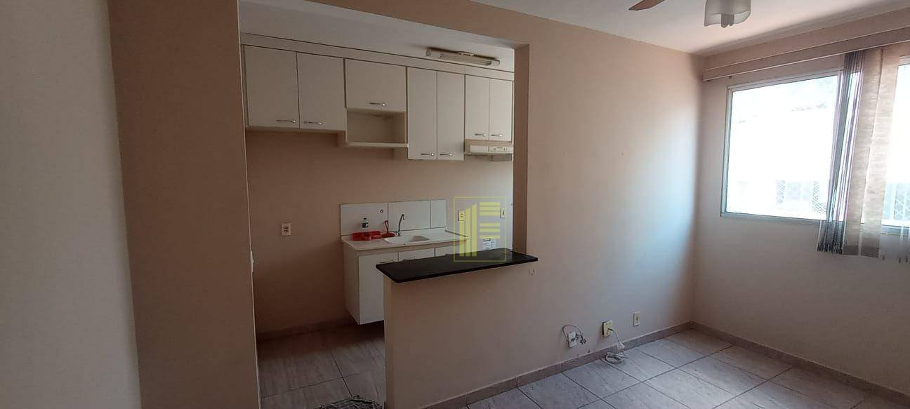Apartamento com: 2 quartos com ventiladores, sendo 1 com armário e ar condicionado; Sala, cozinha com armários; Banheiro com armário e box de vidro, lavanderia; 1 vaga de garagem descoberta.