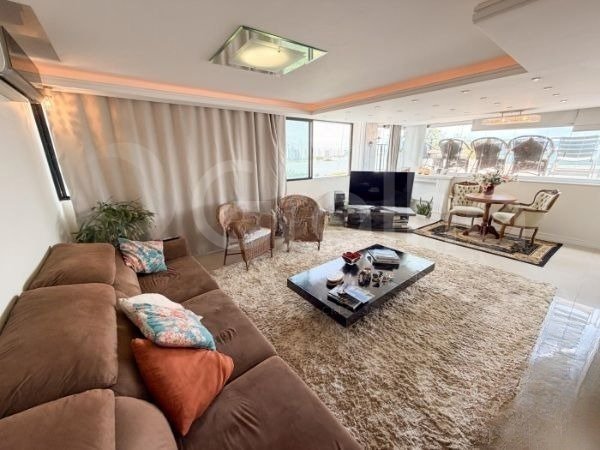 Cobertura com 150 m² de área privativa e 200 m² de área total. Possui 3 suítes, 5 banheiros e 2 vagas de garagem. Vista panorâmica e vista mar. Conta com piscina privativa, churrasqueira e sacada. Imóvel semi mobiliado, com ar-condicionado e cozinha americana. Condomínio com elevador, portaria e salão de festas. Ideal para quem busca espaço, vista e área de lazer privativa.