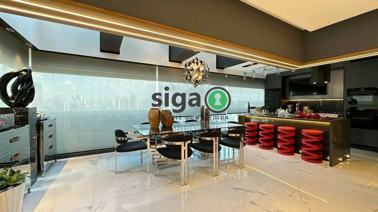 Linda cobertura duplex à venda no Campo Belo com 335m² No piso superior, temos a área íntima com 03 suítes, sendo planta original de 04 suítes. A suíte master com closet e chuveiro duplo, varanda gourmet envidraçada, piscina privativa. No piso inferior, hall de entrada, living com 3 ambientes, integrados à varanda, cozinha, lavabo, adega climatizada, sala de jantar, sala de visita. Terraço gourmet (cooktop, geladeira), fogão e micro-ondas, churrasqueira, com TV LED, forno de pizza, bar e balcão em granito preto, deck com a piscina e jardim vertical. Eletrodomésticos são importados. Lavanderia, quarto de empregada, despensa, cozinha (móveis). 7 banheiros com metais de primeira linha. 5 vagas de garagem, uma das vagas tipo box e 1 vaga de moto + depósito com carregador elétrico, bicicletário. Excelente localização próximo à Avenida Santo Amaro, Avenida Roberto Marinho, aeroporto, parque, escolas e comércios. O condomínio oferece: churrasqueira, jardim, piscina adulto e infantil com deck, playground, quadra poliesportiva, sala de ginástica, salão de festas, salão de jogos, sauna, vestiário, espaço gourmet, brinquedoteca, SPA (sala de massagem) e pet place. Os valores e disponibilidades expressos neste anúncio podem sofrer alterações sem aviso prévio, assim como erros de ortografia, gramática ou erros de digitação.