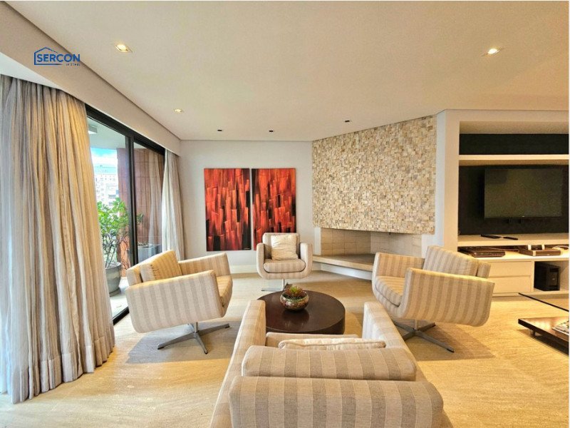 Totalmente mobiliado e decorado, este apartamento de 163 m² está localizado no coração do Itaim Bibi. O living oferece três ambientes: sala com lareira e varanda que se estende de parede a parede, uma confortável sala de TV e a sala de jantar, que acomoda oito pessoas também com varanda. O piso é em mármore e a mobília é de excelente qualidade. No lavabo, a pia é esculpida e o revestimento em mármore. Além disso, o hall social é individualizado, garantindo privacidade. A cozinha é espaçosa, com janelões, muitos armários, eletrodomésticos em aço inox e utensílios e louça. A área de serviço conta com lavanderia ampla e quarto de serviço já montado com cama e armários, além de banheiro, ideal para quem possui ajudante que dorme no local. Na área íntima, o piso em madeira traz aconchego. A suíte máster possui dois closets, um escritório, varanda privativa e ar-condicionado. A segunda suíte também conta com varanda. O condomínio oferece lazer com piscina, brinquedoteca, playground e academia. Portaria 24 horas. Condomínio e IPTU a consultar.