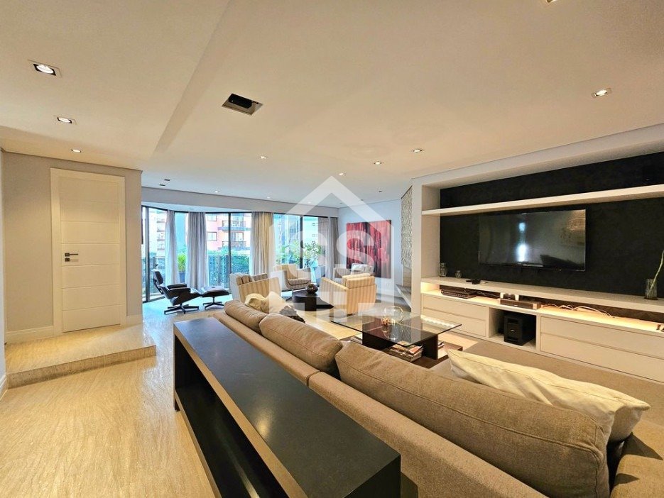 Totalmente mobiliado e decorado 163 m² - 2 suítes - 2 vagas Muito bem localizado no coração do Itaim Bibi, este apartamento de 163 m² está totalmente mobiliado e com ótimos acabamentos. O living oferece três ambientes: sala com lareira e varanda que se estende de parede a parede, uma confortável sala de TV e a sala de jantar, que acomoda oito pessoas também com varanda. O piso é em mármore e a mobília é de excelente qualidade. No lavabo, a pia é esculpida e o revestimento em mármore. Além disso, o hall social é individualizado, garantindo privacidade. A cozinha é espaçosa, com janelões, muitos armários, eletrodomésticos em aço inox e utensílios e louça. A área de serviço conta com lavanderia ampla e quarto de serviço já montado com cama e armários, além de banheiro, ideal para quem possui funcionária que dorme no local. Na área íntima, o piso em madeira traz aconchego. A suíte máster possui dois closets, um escritório, varanda privativa e ar-condicionado. A segunda suíte também conta com varanda. O condomínio oferece lazer com piscina, brinquedoteca, playground e academia. Portaria 24 horas.