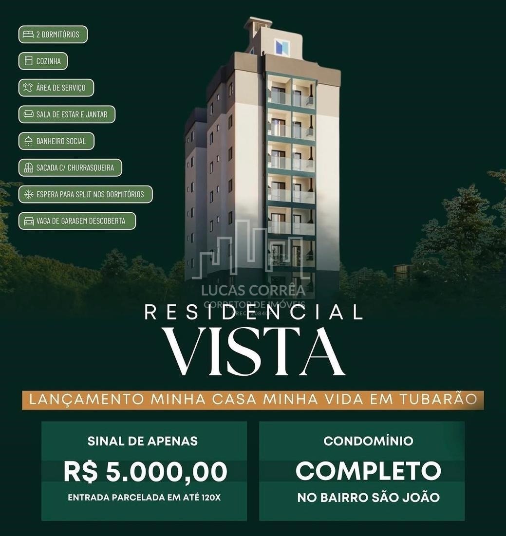 LANÇAMENTO MINHA CASA MINHA VIDA EM TUBARÃO - CHEGOU A SUA OPORTUNIDADE! Seu novo apartamento com condições que cabem no seu bolso! Apenas R$ 5 MIL de sinal Entrada parcelada em até 120x 100% do valor do imóvel pode ser parcelado! Localizado no bairro São João, um bairro valorizado, longe de áreas de alagamento e próximo da nova unidade do Komprão Atacadista! O imóvel ideal para quem vai conquistar o primeiro lar! Se você tem renda familiar entre R$ 5.500 e R$ 6.000, essa é a sua chance de sair do aluguel e realizar o sonho da casa própria com facilidade e segurança. Unidades a partir de R$ 285.900,00. Previsão de entrega para Julho/2029. Saiba mais!