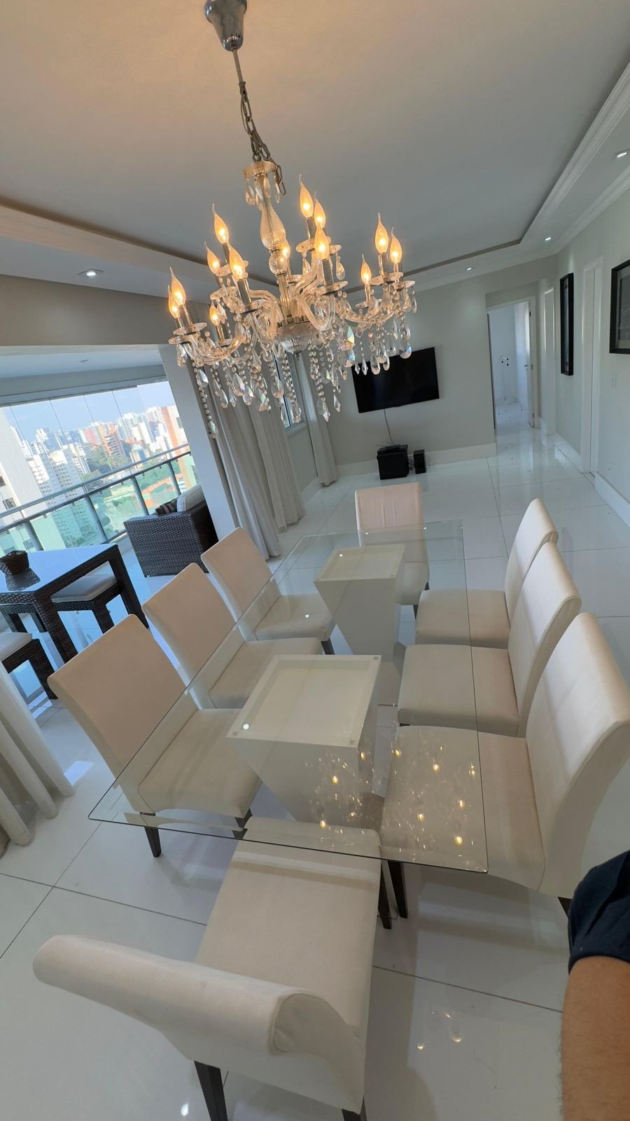 Tem forno elétrico, cooktop, máquina de louça, filtro de água, bancada cozinha com 4 cadeiras, mesa sala com 6 cadeiras, varanda gourmet completa, 2 TVs, 1 home theater com controle remoto e 5 caixas de som e 1 amplificador, 1 roteador, quadros, cortinas, lustre de sala. Apartamento no Morumbi - Vila Andrade, com 119m² (piso do apartamento todo em marmoglass), 3 suítes, total de 5 banheiros, com depósito em frente às 2 vagas da garagem! Possui jardim, espaço gourmet, mini mercado, área de fitness, espaço para festas, área de brinquedo para as crianças, espaço para estudos e 2 salas.