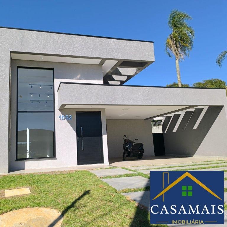 Casa de alto padrão térrea no condomínio. Características principais: 3 suítes, sendo a master com closet e banheiro com pias duplas. Sala de estar e jantar com pé direito alto. Cozinha com pia dupla, balcão, ilha e fogão em granito. Espaço gourmet, ampla área de serviço e lavabo. Piscina ampla com prainha. Ambientes integrados: sala de estar e jantar, hall. Garagem: vagas para 4 carros, sendo 2 cobertas e 2 descobertas. Esta casa oferece um design moderno e elegante, perfeita para quem busca conforto e sofisticação em um condomínio de alto padrão. Agende sua visita e venha conhecer de perto todos os detalhes que fazem desta propriedade uma verdadeira joia. Casa toda preparada para aquecimento de água, aquecedor, ar condicionados e placas solares. Condomínio com lazer completo: piscina, quadra de tênis, salão de festas, fitness, churrasqueiras, quadra poliesportiva, pista de caminhada e um lago. Segurança 24 horas.