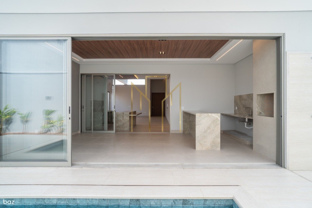 Casa térrea de luxo com design exclusivo e acabamentos de alta qualidade! Descubra a elegância e o requinte desta incrível residência, com um terreno de 465m² e uma construção de 232m². São 3 suítes, sendo uma master com closet e duas com semi-closet, além de um escritório e um lavabo social próximo para maior comodidade. As salas espaçosas e com pé direito duplo proporcionam um ambiente sofisticado e acolhedor, perfeito para receber amigos e familiares. A cozinha e a área gourmet estão integradas, facilitando o convívio e a praticidade no dia a dia. Todos os detalhes foram pensados com muito cuidado e bom gosto, como as bancadas em quartzito Perla Venata na cozinha e na área gourmet, as esquadrias de alumínio e as persianas integradas e motorizadas nas suítes. A piscina com hidro e o paisagismo completam o charme desta casa única. Não perca a oportunidade de viver em um lugar que une sofisticação, conforto e funcionalidade. Agende agora mesmo uma visita e encante-se com cada detalhe deste imóvel de alto padrão!