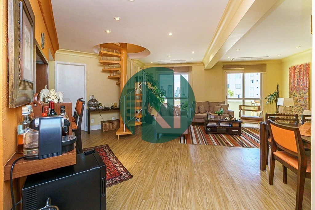 Cobertura Duplex com 231 m² bem distribuídos e muito iluminada. No primeiro andar há 3 quartos (2 suítes), todos com ar condicionado. Na suíte master há um espaçoso banheiro com generosa jacuzzi. A sala é ampla, com varanda e também conta com ar condicionado. A cozinha e a área de serviço são repletas de armários. O segundo andar é composto por um delicioso e amplo ambiente, todo integrado e que permite, ao mesmo tempo, usufruir de diversos ambientes, com linda lareira e lavabo. Uma das áreas externas possui área gourmet e a outra amplo quintal com dependência de funcionários. O condomínio apresenta piscina, área de churrasqueira e salão de festas. Para quem busca charme, conforto e espaço! Preço e disponibilidade do imóvel sujeitos a alteração sem aviso prévio.