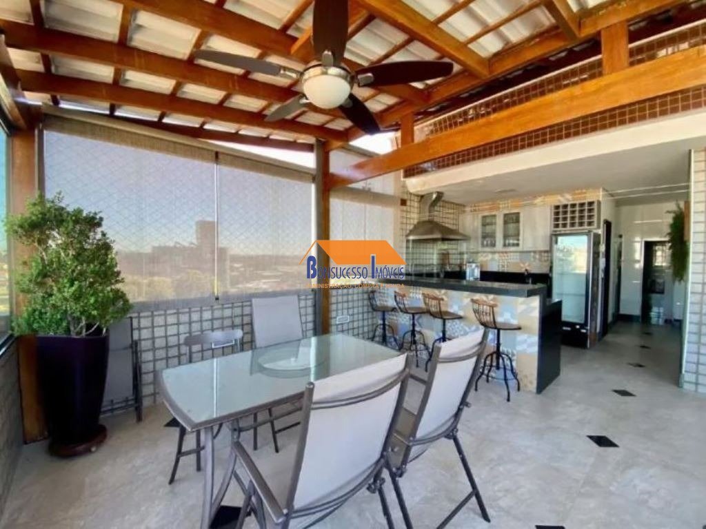 Cobertura de 3 quartos, Bairro Dona Clara com: 1º piso: Sala dois ambientes, rebaixamento de teto, iluminação embutida, piso porcelanato, banho com armários, box blindex, 03 (três) quartos com piso em porcelanato, armários (sendo 1 suíte com bancada, armário e box), cozinha estilo americana, com bancadas em granito e armários planejados. 2º piso: Escada de acesso em granito, sala de visita em porcelanato, sauna, hidromassagem, lavabo - espaço gourmet planejado - banho com armários e box blindex - área de serviço. 02 vagas cobertas e livres (parelelas). Prédio de 3 andares, 100% revestido - ótimo local.